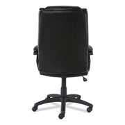 Comfort and style combine when you add this faux leather chair to your workspace. The extended back, lumbar support, and plush padding enhance comfort. The soft, Luxura™, leather-look upholstery is easy-to-clean and adds a modern touch. Fully customizable pneumatic seat height adjustment lets you find the right position for your desk and screen height. Recline at the perfect angle for the task at hand with built-in tilt tension and lock. Some assembly required.