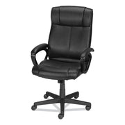 Stay comfortable through extended workdays with this stylish, high-back manager's chair. Designed for luxurious comfort and maximum head, neck, back, and shoulder support with plush cushioning, padded armrests, and adjustable lumbar support. Customize your working position with adjustable height and tilt tension. The bonded leather seat has a modern touch and is easy-to-clean. Swivel and tilt to reach items stored in drawers or stashed under your desk. Mobile design features a stable, five-star base with rolling casters.