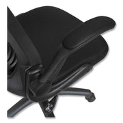 Adjustable chair with flip-back arms that pivot back and out of the way when not needed. Constructed with a breathable mesh back and generously padded seat for all-day comfort. Built-in mesh armrests are padded for extra comfort. The waterfall seat edge reduces pressure points at the back of the knee. Thoughtfully designed with integrated lumbar support that helps reduce neck and back strain.
