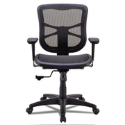 Ergonomic design adjusts to fit multiple users. Cool, breathable mesh back. Contoured seat cushion with waterfall edge to help relieve pressure on legs. Height- and width-adjustable arms with soft polyurethane pads. Five-star base with casters for easy mobility.