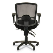 An economical choice for mesh comfort. Designed for the petite user, but adjustable to fit all. Three-lever multifunction mechanism for complete control of the back angle relative to seat, seat slide and forward tilt. Adjustable height back with adjustable lumbar support. Height- and width- adjustable arms with soft polyurethane armcaps for ideal arm placement. Black five-star nylon base with hooded casters. Tilt lock and tilt tension controls rate of recline to accommodate any user.