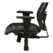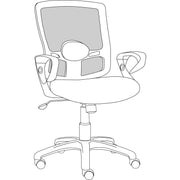 Mesh suspension seat and back provides firmness, breathability, and comfort. Adjustable lumbar support. Back reclines at 2-to-1 angle to the seat allowing user to recline while keeping seat relatively even with the floor. Adjustable arms offer optimal positioning. Five-star base with casters.