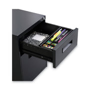 Get organized with a high-sided file cabinet with drawers that accommodate letter or legal-size filing. The counterweight prevents tipping. Visible, easy-access casters, two locking, two non-locking. Steel ball bearing slide suspension helps drawers glide smoothly and with ease. Built with 3/4 extension on box drawers and full-length extension on file drawers for maximum accessibility. Full-length pull permits easy opening. Box drawers include one divider and pencil tray.