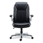 Alera Leithen Bonded Leather Midback Chair, Supports Up to 275 lb, Black Seat/Back, Silver Base