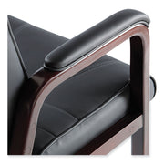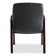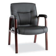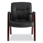 Alera Madaris Series Bonded Leather Guest Chair, Wood Trim Legs, 25.39" x 25.98" x 35.62", Black Seat/Back, Mahogany Base