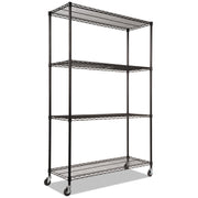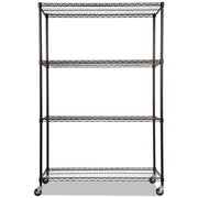 Alera NSF Certified 4-Shelf Wire Shelving Kit with Casters, 48w x 18d x 72h, Black