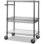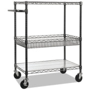 Alera Three-Tier Wire Cart with Basket, Metal, 2 Shelves, 1 Bin, 500 lb Capacity, 34" x 18" x 40", Black Anthracite