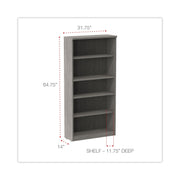 Alera Valencia Series Bookcase, Five-Shelf, 31.75w x 14d x 64.75h, Gray