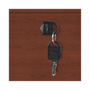 Freestanding pedestal file cabinet that attaches under worksurface. Sturdy, four-sided drawer construction with separate front panel. Full-extension ball bearing slides on file drawer for easy access to files. Drawers lock for securing contents. Durable 3 mm edge banding protects against bumps and dings. Two, fold-away safety keys for a slimmer profile are included.