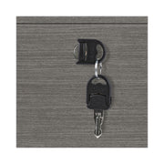Freestanding pedestal file cabinet that attaches under worksurface. Sturdy, four-sided drawer construction with separate front panel. Full-extension ball bearing slides on file drawer. Drawers lock for securing contents. Durable 3 mm edge banding protects against bumps and dings. Two, fold-away safety keys for a slimmer profile are included.