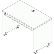 Portable mobile workstation desk goes anywhere you need it. Scaled to fit in tight spaces and designed to pass through standard doorways to go from room to room. Full width, full-extension, slide-out keyboard tray. Commercial-grade laminate worksurface and side panels are water, scratch, and dent-resistant. Charcoal accent line under worksurface adds a distinctive touch. Protective edge banding helps prevent damage from bumps. Two grommets for cable and wire management. Undermount interior shelf for quick storage and to hold wires when moving. Three-fourths height back modesty panel for privacy. Four casters (two locking) for mobility.