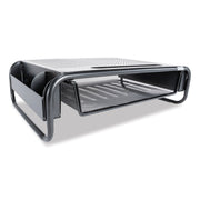 The Allsop Metal Art Organizer 5 Monitor Stand is a multi-function monitor stand that organizes your workspace while raising your monitor to a comfortable ergonomic viewing height. Featuring five organizing features, this all-steel monitor stand is the perfect way to clear clutter and free up valuable desk space. The built-in sliding drawer is ideal for storing documents, while the side cubbies provide spaces for organizing your office supplies. Store your keyboard underneath the stand to create additional desk space. Protective non-slip feet keep the stand firmly in place and prevent scuff marks. The steel construction and durable powder-coated finish ensure that this monitor stand will provide organization and ergonomic comfort for years.