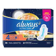 Always Ultra Thin Overnight Pads with Wings, 36/Pack, 6 Packs/Carton