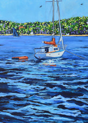 "Anchored" Sailboat Lake Print on Paper, Wood Panel - Wall Art Home Decor