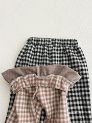 These charming plaid trousers are perfect for your little girl's autumn adventures. Featuring a delicate lace trim, they add a sweet touch to cozy fall outfits. Soft and affordable, these pants keep your child comfortable while exploring the season in style.