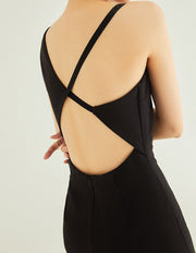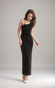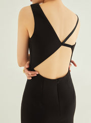 Asymmetrical geometric concept hallowed back pencil skirt satin prom dress