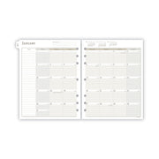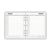 Refill covers a 12-month date range January to December. High-quality paper features superior ink bleed resistance. One day per page has appointment times with room for extra notes. Tabbed one month per two-page spread features ruled daily blocks for detailed planning and a column for notes. Pre-punched for use in a refillable organizer, sold separately.