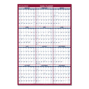 Reversible: horizontal or vertical layout. Write-on/wipe-off surface for use with wet-erase markers. Bold, large, easy-to-read print on bright white background. Side One: Vertical yearly (January to December); Side Two: Horizontal yearly (January to December). Wet-erase marker included.