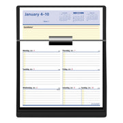 Yellow highlighted section for notes and to-do’s. Weekly pages flip up and drop into convenient storage base. One week per page, ruled for open scheduling. Past, current and future months reference; federal holidays highlighted. Printed in blue, yellow and red inks. (Base not included.)