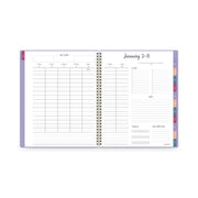 Planner features a durable, stylish poly cover with gold twin-wire binding. 13-month date range from January to January for year round planning. High-quality paper features superior ink bleed resistance. One week per two-page spread has ruled daily columns with tick marks for custom planning. Additional sections include notes, top 3 goals, to-do, track it and wins of the week. One month per two-page spread has unruled daily blocks and space to list goals, to-do's, notes and ideas. Each month is tabbed to quickly flip to any date. Special pages include a holiday listing, 3-year reference calendar, future planning pages, gift ideas, birthdays/important dates, contacts, expense tracking, and notes. Includes repositionable stickers in different colors to track multiple projects, people or events, and a double-sided interior pocket to store loose papers.