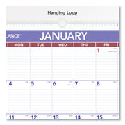 One-month view, plus a yearly calendar reference. Ruled daily blocks. Federal holidays printed in red. Wirebound with hanging loop. Full chipboard back. Printed on high-quality paper.