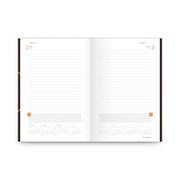 Track your calendar and take notes all in one place. This planning notebook has daily spreads and space to write down important reminders and to-do lists. Planning notebook covers a 12-month date range from January to December for year round planning. One day per page includes ruled planning space and a HOT spot reminder section for important reminders. Past and future calendars included across a two-day spread for quick date checking. Special features include monthly reference pages, a quick reference guide, and index. Planner has a bookbound design and bungee closure. 6" x 9" page size.