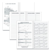 Premium paper resists ink bleed. One month per two-page spread with unruled blocks; Monday start; past and future months reference. Separate, removable tabbed wirebound telephone/address section; separate, removable memo pad. Printed on high-quality paper with superior ink bleed resistance.