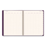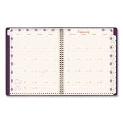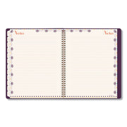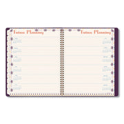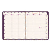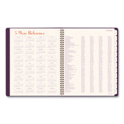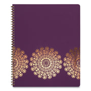 Sundance planner has deep purple covers with a gold foil medallion design for added style. Pages feature a purple, orange and teal design. Covers 12 months from January to December for complete planning all year long. One week per two-page spread has ruled columns with hourly appointment times 7:00 am to 8:00 pm Monday to Friday to track your daily schedule. Weekends are untimed. One month per two-page spread has ruled daily blocks, notes space, and past/future month reference calendars. Each month is tabbed to quickly flip to any date. Special pages, including a holiday listing, 3-year reference calendars, event calendar, future planning, contacts and notes pages, are easy to reference while planning. Double-sided poly pocket stores loose sheets. Twin-wire binding keeps pages securely held together.