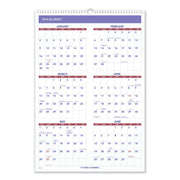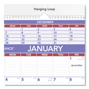Three-month view with plenty of space for planning in the current month. Three months per page: large current month with ruled blocks, condensed past and future months. Federal holidays highlighted. Bonus page: six future months. Chipboard backing; white wirebound with hanging loop. Contemporary design with plenty of writing space. Printed on high-quality paper with superior ink bleed resistance.