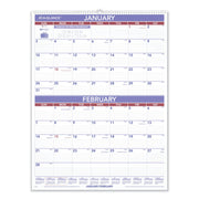 Displays two months at a time for easy planning. Two months per page (six pages total) with ruled blocks. Full-year calendar reference; federal holidays highlighted. White wirebound with hanging loop. Printed on high-quality with superior ink bleed resistance.