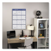 Plans change, and this large wall calendar is made to keep up whether you are planning for yourself or a whole group. It's fully erasable and reverses from horizontal to a vertical annual view layout as needed. Write, erase and write some more all year long to stay on top of a busy, frequently changing schedule. Write-on/wipe-off surface. Wet-erase marker included.