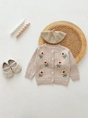 Autumn Arrival Baby Kids Girls Comfortable Flowers Embroiedery Pattern Knitted Long Sleeves Cardigan