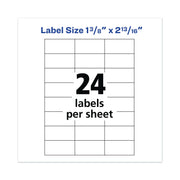 Avery Copier Mailing Labels, Copiers, 1.38 x 2.81, White, 24/Sheet, 100 Sheets/Box