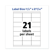 Avery Copier Mailing Labels, Copiers, 1.5 x 2.81, White, 21/Sheet, 100 Sheets/Box
