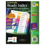 Organized documentation makes a business run like a well-oiled machine. These Ready Index® Table of Contents Dividers help you stay organized so you can locate documents quickly and efficiently. They feature preprinted multicolor tabs that can be displayed in either landscape or portrait format. Using free templates from Avery Design & Print you can customize the included table of contents page and print in minutes. Organization and efficiency—makes life better for your business. For laser and inkjet printers.