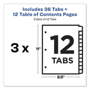 Avery Customizable Table of Contents Ready Index Dividers with Multicolor Tabs, 12-Tab, 1 to 12, 11 x 8.5, White, 3 Sets