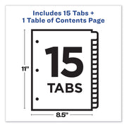 Avery Customizable Table of Contents Ready Index Dividers with Multicolor Tabs, 15-Tab, 1 to 15, 11 x 8.5, Translucent, 1 Set