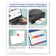 Organized documentation makes a business run like a well-oiled machine. These Ready Index® Table of Contents Dividers help you stay organized so you can locate documents quickly and efficiently. They feature preprinted multicolor tabs that can be displayed in either landscape or portrait format. Using free templates from Avery Design & Print you can customize the included table of contents page and print in minutes. Organization and efficiency—makes life better for your business. For laser and inkjet printers.
