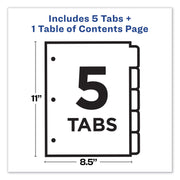 Avery Customizable TOC Ready Index Black and White Dividers, 5-Tab, 1 to 5, 11 x 8.5, 1 Set