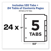 Avery Customizable TOC Ready Index Multicolor Tab Dividers, Uncollated, 5-Tab, 1 to 5, 11 x 8.5, White, 24 Sets