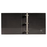 Durable binder features a sturdy construction that's ideal for frequent referencing. The DuraHinge® design is stronger, lasts longer and resists tearing, and the DuraEdge® feature makes the sides and top more pliable, providing greater split resistance. Deeply textured film offers a smoother finish and features a linen pattern for a high-quality look and feel. The binder features wider front and back panels to fully cover standard dividers and sheet protectors. Slant rings have a higher page capacity when compared to the same size round rings. Pages lie flat with back-mounted rings. Two interior pockets provide plenty of room to store both punched and unpunched paperwork.