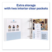 Perfect for light-use, this slim binder is a convenient and lightweight solution. Textured clear cover hides surface damage resulting from normal use. Put your personal stamp on the binder by designing a customized cover from Avery® Design & Print. Tuck important handouts, pamphlets and other loose or unpunched paperwork into the two interior pockets for quick access. Rings are either back-mounted for a clean spine and pages lie flat, or spine-mounted with concealed rivets - perfect for customizing front and back layers. It's the friend your papers never knew they were missing.