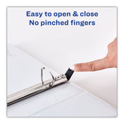 With this Heavy-Duty Nonstick View Binder you get one-touch operation and the durability required for everyday use. Nonstick material won't lift ink or toner off printed pages. Tear-resistant DuraHinge® design is stronger and lasts longer. DuraEdge® feature makes the sides and top more pliable, providing greater split resistance. Deeply textured film offers a smoother finish and features a linen pattern for a high-quality look and feel. Four clear, interior pockets provide extra storage space. Wider front and back panels fully cover standard dividers and sheet protectors. Slant rings have a higher page capacity when compared to the same size round rings. Pages lie flat with back-mounted rings (exposed rivets on back). Customize your title page using free templates and designs at Avery® Design & Print Online.