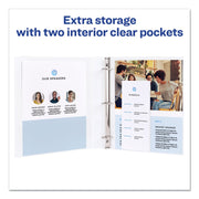 Three-ring binder holds 8 1/2 x 14 documents. Provides document protection and a professional appearance. Customize the front, back and spine to suit your presentation needs and to make it easy to identify contents. Wider panels cover standard dividers and sheet protectors and feature two large interior pockets.