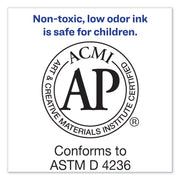 Won't dry out – leave cap off up to ½ hour! Bold marking, permanent ink provides high visibility. Marks on virtually any surface, including cardboard, metal, and plastic. Quick drying; water and rub resistant. Durable chisel tip marks in a variety of widths. Low odor. ACMI certified to meet Federal standards of nontoxicity; safe for office, school, or home. Conforms to ASTM D4236.
