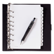 Get organized with these Mini Pre-printed Dividers. The small size is perfect for dividing mini binders or planners. The handy pre-printed tabs give you more versatility, and the clear reinforced binding edge and tabs offer greater durability. Quickly find the section you are looking for with easy-to-read black lettering. For easy reference at a glance, our pre-printed dividers spell it out for you. These dividers are seven hole-punched for 5-1/2" by 8-1/2" small format binders and organizers.