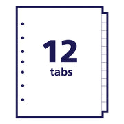 Avery Preprinted Tab Dividers, 12-Tab, A to Z, 8.5 x 5.5, White, 1 Set