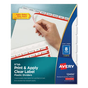 Avery Print and Apply Index Maker Clear Label Plastic Dividers w/Printable Label Strip, 8-Tab, 11 x 8.5, Frosted Clear Tabs, 5 Sets
