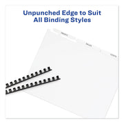 Choose unpunched tab dividers to create professional-looking customized bound documents right at your desktop. Great for use with comb or wire binding systems. Clear labels virtually disappear when applied to tabs. Save time by labeling all tabs at once using Easy Apply™ label strip. Easy to customize with free templates and designs at Avery Design & Print. For laser and inkjet printers.