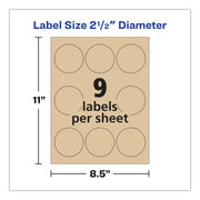 Avery Round Brown Kraft Print-to-the-Edge Labels, 2.5" dia, 225/PK
